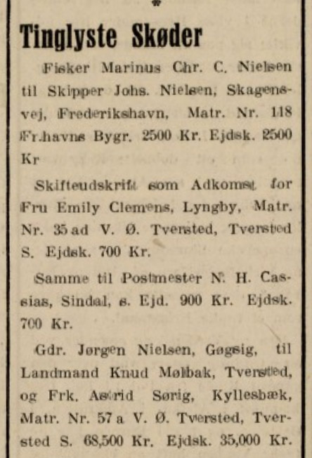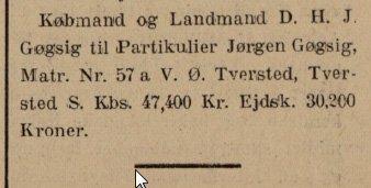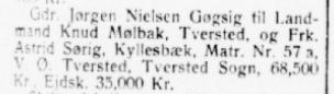 Frederikshavns Avis 1932-10-27. Jørgen Nielsen-Gøgsig køber gården “St. Gøgsig” af Holm Gøgsig.