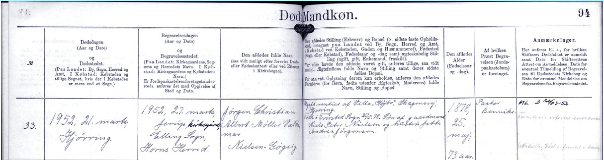 Jørgen Christian Albert Møller Valdemar Nielsen blev født d. 25. maj 1878 på Gjögsig i Sørig. Jørgens fødsel og dåb er registreret i Sørig kirkes kirkebog, Hjørring amt. Fik i 1920 18. marts kgl. Bevilling paa Navnet: Jørgen Christian Albert Møller Valdemar Nielsen-Gøgsig (VA 357 / 1920).
