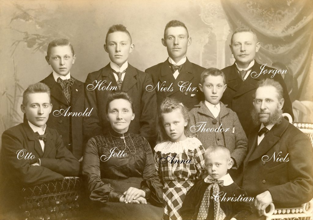 Nedenfor finder du en oversigt over navnene på Niels og Jettes efterfølgere i 2 slægtsled. Den digitale slægtsbog indeholder også det 3. slægtsled.