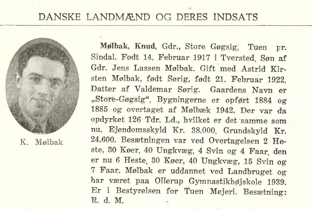 Teksten er fra bogen “Danske Landmænd og deres indsats” udgivet i 1945.