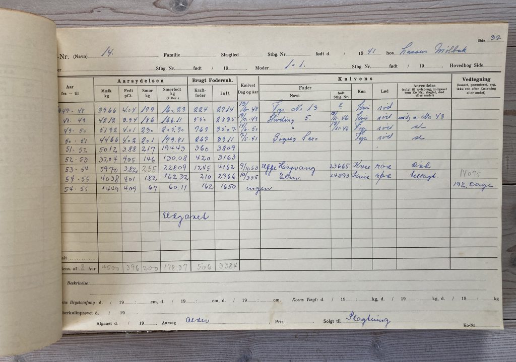 Kontrolassistent Hans Langhoff Nedergaard har bidraget med foto fra mælkekontrol bogen for “St. Gøgsig”