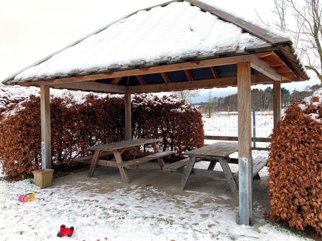 Der har i længere tid været et ønske om at få opført et madpakke hus, ud over det bål hus der allerede findes, men det har der ikke været økonomi til.