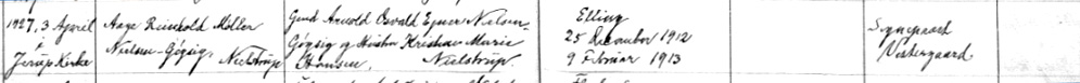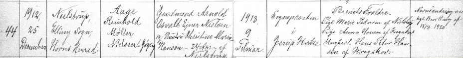 Her blev Aage Reinhold Møller Nielsen født den 25. december 1912. Aage er det næst ældste barn i en børneflok på 9 børn: Karla (1911), Aage (1912), Gustav (1914), Gerda (1915), Ebba (1917), Viola (1920), Niels Peter (1922), Arnold (1923) og Jette (1925).