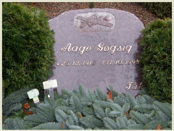 Aages gravsten på Voer Kirkegård. Da Gustav og Edith Gøgsig døde, blev deres navne også tilføjet deres fælles gravsten.