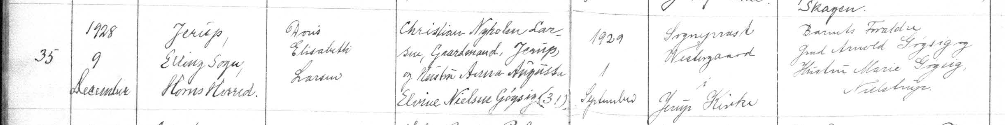 Doris blev født den 9. december 1928 i Elling Sogn, på gården ”Ledet” lidt nord for Jerup. Hun bærer ikke navnet Gøgsig som den ældste broder Peter Gøgsig Larsen. Den anden broder Ejvin Larsen er født d. 12. august 1912.