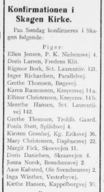 Doris blev konfirmeret d. 17. oktober 1943 i Skagen.