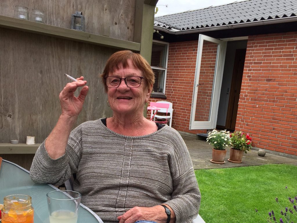 Dorrit nyder tilværelsen i haven på Birthesvej i Hjørring.