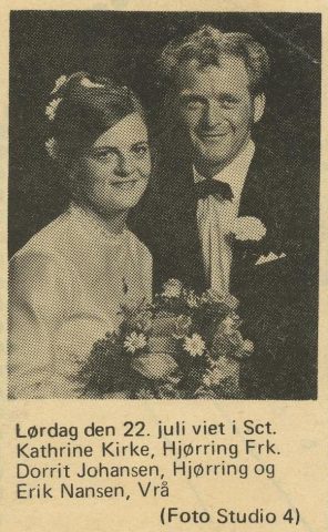 På et tidspunkt møder Dorrit slagteriarbejder Erik Nansen. Erik er oprindelig fra Bornholm, men allerede som barn flytter hans familie til Vrå. I mange år arbejder han som slagter i Vrå, men skiftede senere arbejdsplads til slagteriet Wenbo i Hjørring. Lørdag den 22. juli 1972 bliver Dorrit gift med Erik i Sct. Cathrine Kirke i Hjørring. Bryllupsfesten bliver afholdt på Liver Mølle Kro. Steen er på det tidspunkt 7½ år.