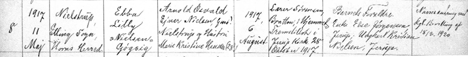 Navneændring: Ved kongelig bevilling 18/3 1920. Ebba Lilly Nielsen kom herefter til at hedde Ebba Lilly Nielsen-Gøgsig. Hun var på det tidspunkt 3 år gammel.
