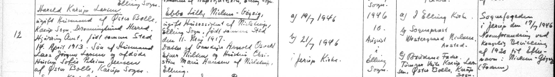 Ebba blev den 10. august 1946 gift med Harald Karup Larsen husmand af Øster Bolle, Karup Sogn, Dronninglund Herred. Han er søn af husmand Lars Jørgen Larsen og hustru Sofie Petrine Jensen af Øster Bolle Karup sogn. Harald er født den 14. april 1913 i Øster Boller, Karup sogn, Dronninglund Herred og konfirmeret i Karup Kirke den 3. april 1927..