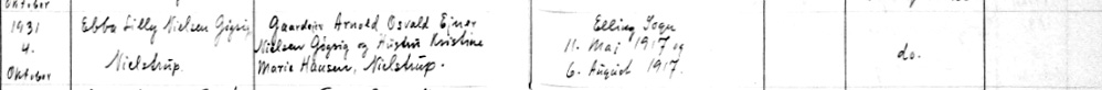 Ebba Lilly Nielsen Gøgsig blev konfirmeret d. 4. oktober 1931 i Elling Kirke.