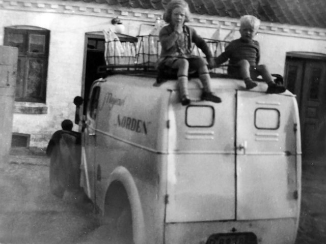 Da Gitte var i før skolealderen købte Peter en mælkebil, det har vel været i midt 60erne. På det tidspunkt havde Ejvin stadig en hestevogn at køre rundt med. I 1968 startede Gitte i skolen, og når Ejvin kom ud med mælk fik hun lov til at køre med oppe på Hækken af mælkevognen.