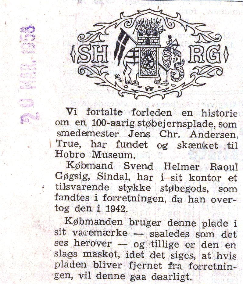 Støbejernspladen der blev brugt i Svend Gøgsigs varemærke.