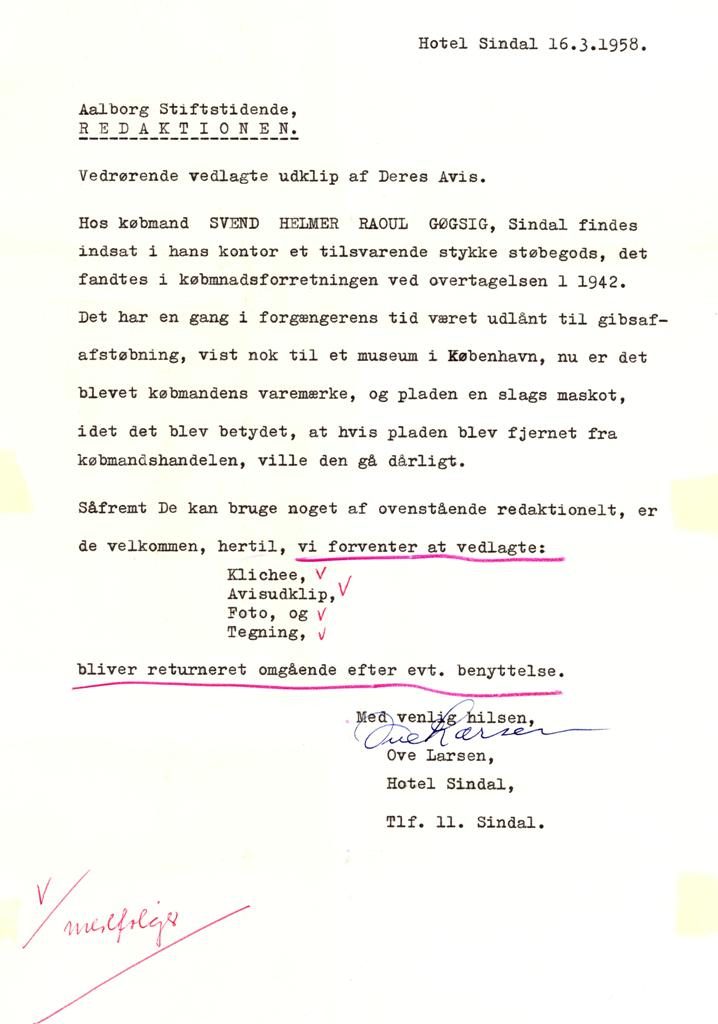 Brev til Aalborg Stiftstidende d 16.3.1958.