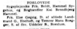 (I01). Else Marie Nielsen-Gøgsig (f. 13. juni 1924 i Skærsø – d. 28. januar 2010 i Rudkøbing) blev den 6. december 1947 gift med Aksel Skovgaard Jensen (f. 6. marts 1925 i Hornslet – d. 9. april 2006 i Rudkøbing).