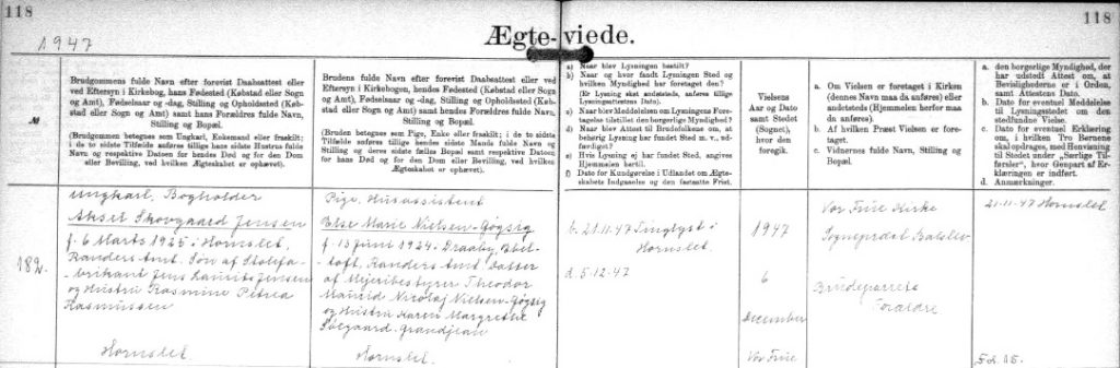 Bryllup – Aarhus Stiftstidende 5. december 1947.