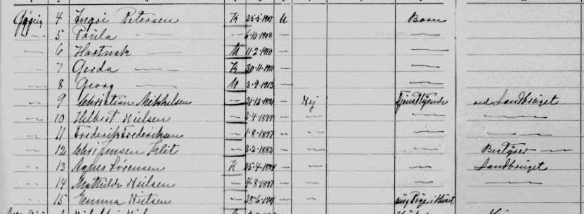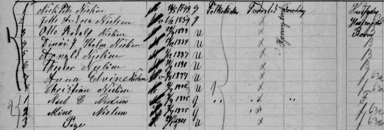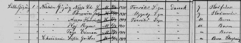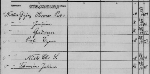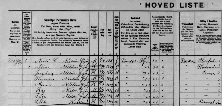 Niels Christian Nielsen bor nu på gården ”Lille Gøgsig” sammen med Thomine, Ingeborg, Herman, Krista, Hans og Anna. De bruger alle efternavnet Nielsen. De yngste børn: Kaj og Tage er endnu ikke født.