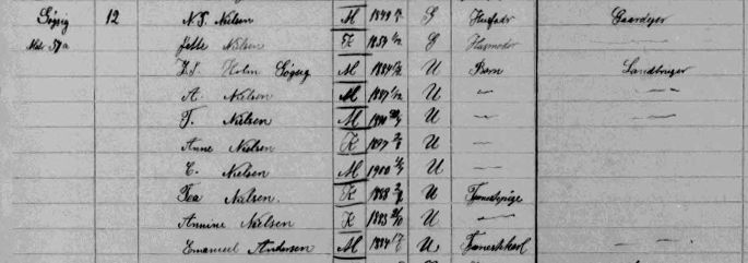 Niels Christian Nielsen bor nu på ”Lille Gøgsig” sammen med Thomine, Ingeborg, Herman og Christa. De bruger alle efternavnet Nielsen. De yngste børn: Hans, Anna, Kaj og Tage er endnu ikke født.
