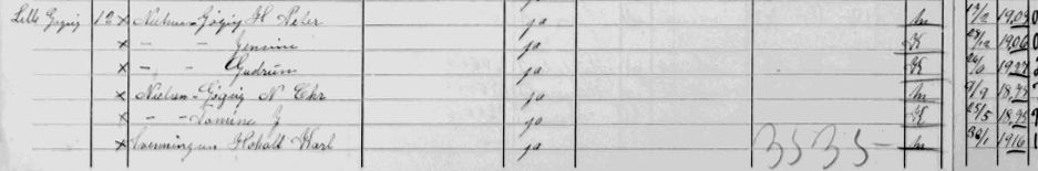 Niels Christian og Thomine bor stadig på Lille Gøgsig. De har nu 5 hjemmeboende børn: Ingeborg, Herman, Anna, Kaj og Tage. Christa og Hans er fløjet fra reden, de er ude at tjene på gården ”Slynge”. De bruger nu alle efternavnet Nielsen Gøgsig. Ingeborgs 2 årige datter Lilly er registreret med efternavnet Kristensen.