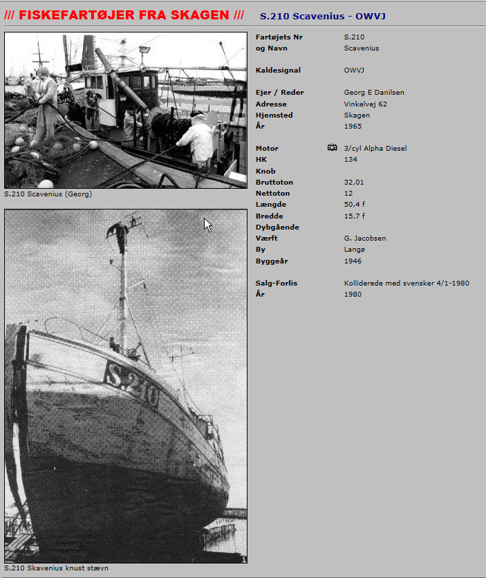 Georg købte fiskekutteren S210 ”Scavenius” i 1965 og solgte det igen i 1986.