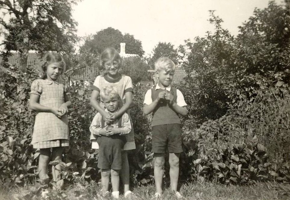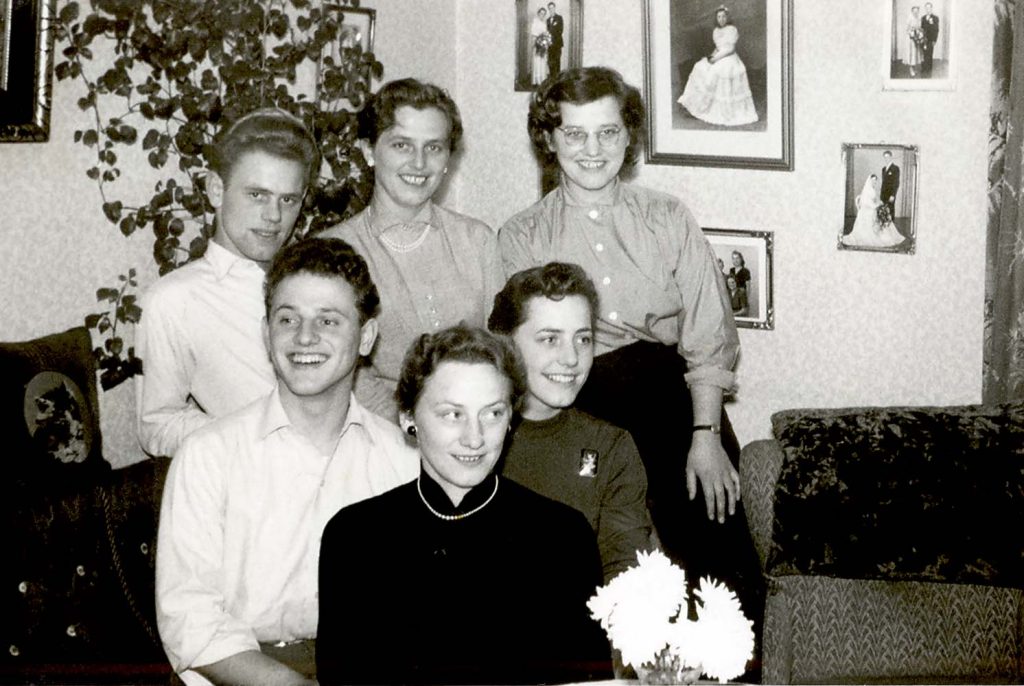 De 6 søskende. Bagerst: Frants, Doris og Minna. Forest: Georg, Lilian og Birthe.