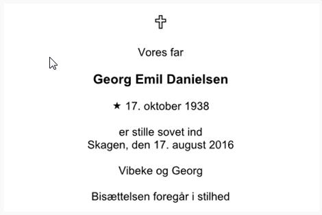 Georg Emil Danielsen blev født den 17. oktober 1938 i Hulsig.