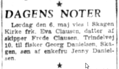 (G09). Georg Emil Danielsen (f. 17. oktober 1938 – d. 17. august 2016) blev d. 6. maj 1961 gift med Eva Klausen (f. 30. november 1938 – d. 12. august 2021).