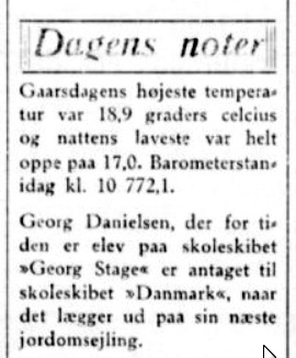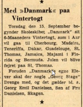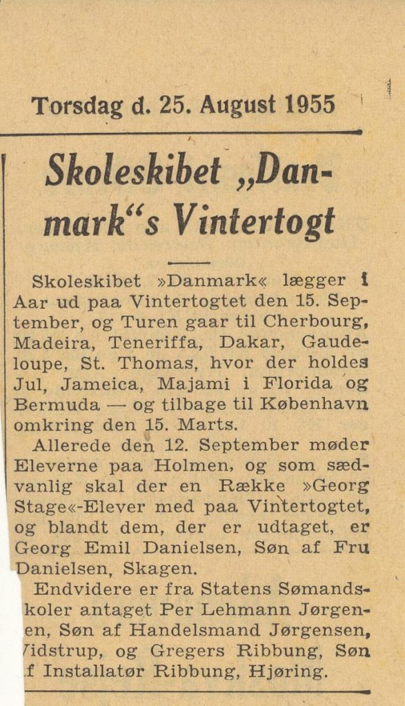 Georg var på togt med både skoleskibet “Georg stage” og “Danmark”: