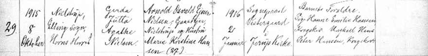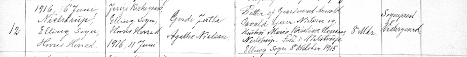 (H04). Gerda Jutta Agathe Nielsen (f. 8. oktober 1915 i Nielstrup, Elling sogn – d. 16. juni 1916).