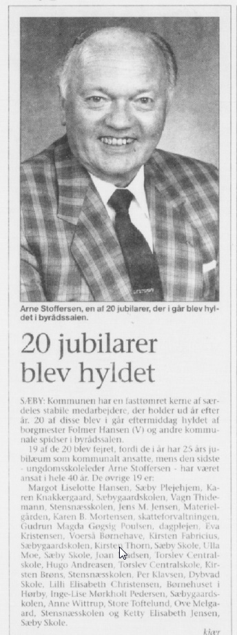 I 1973 blev Gudrun Margit Gøgsig Poulsen ansat i Sæby kommune. Her havde hun 25 års jubilæum i 1998.