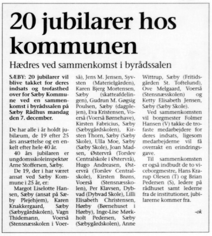 Gudrun Magda Gøgsig Poulsen har 25 års jubilæum i Sæby kommune. Kilde 1998-12-08 Vendsyssel Tidende.
