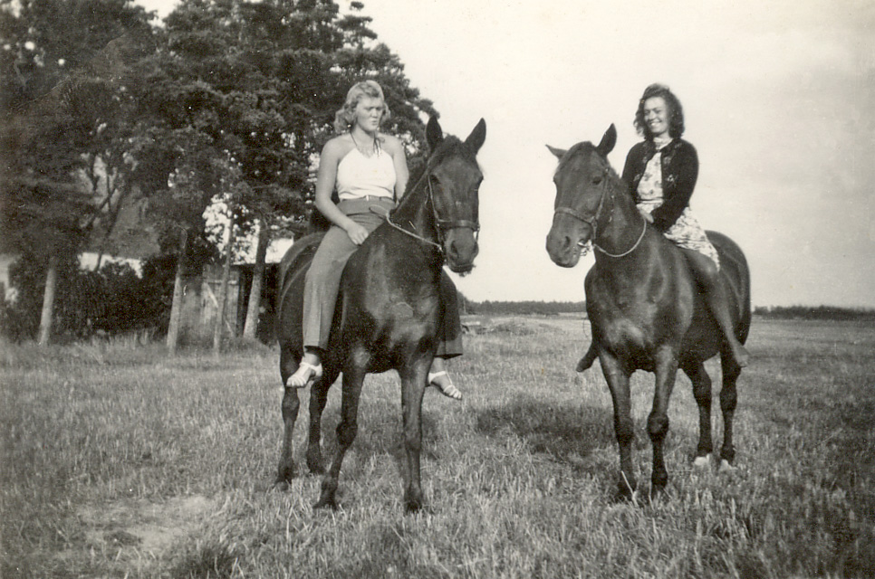 Poul og Gudrun er begge født i 1929. De fik begge den obligatoriske 7 års skolegang i Sørig Nordre Skole. I 1938 blev der taget et gruppefoto af alle elever i skolen. Gudrun er her 11 år gammel. Poul er sikkert også med på fotografiet men som en af de endnu unavngivne personer. Gudrun og Poul blev begge konfirmeret den 5. oktober 1941 i Tversted kirke. Fire dage efter takkede Sinne, Herman og Christian Gøgsig, i en fælles annonce i Vendsyssel Tidende, for opmærksomheden ved konfirmationen. Ud over de daglige pligter blev der også tid til lidt fornøjelser. Det kan man se af et foto fra den gang, hvor Gudrun og Poul er ude at ride på heste.
