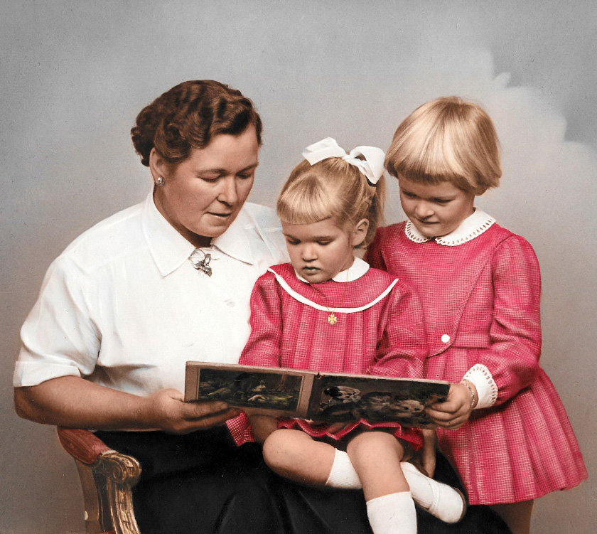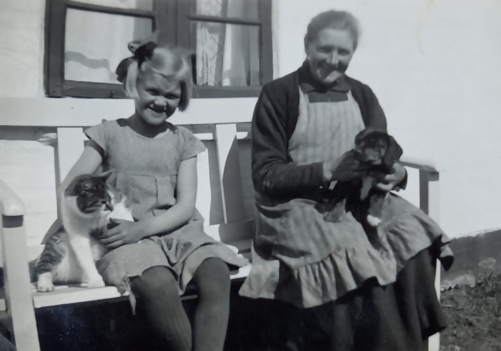 Gudrun havde det billede hængende fremme hele livet. Hendes kommentar til billedet var : “Bedste” (Mine) med sin elskede Dax, og mig med “Gammelkat”, jeg var lige kommet fra skole”.