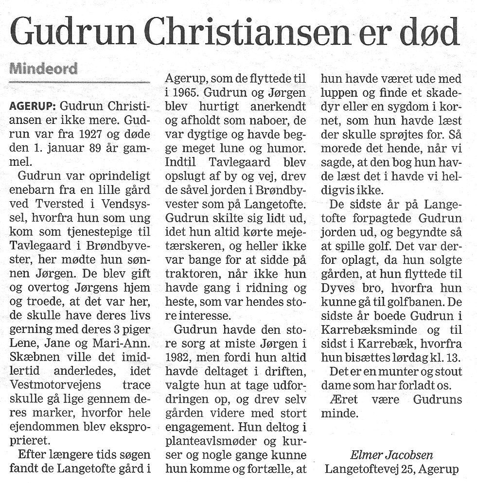 Efter længere tids søgen fandt de i 1965 ”Langetoftegård” ved Næstved Den købte de, og hele familien flyttede ind i deres nye hjem. Her fik de 17 gode år. De hjalp hinanden med driften af gården og havde et godt liv sammen. Gudrun skilte sig lidt ud fra de andre landmandskoner på egnen, idet hun altid kørte mejetærskeren, og heller ikke var bange for at sidde på traktoren. Hende store interesse var på det tidspunkt ridning.