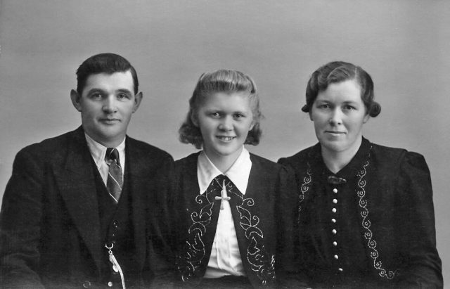Herman, Gudrun og Sinne da Gudrun i 1942 skulle starte på “Halvorsminde” efterskole ved Hjørring.