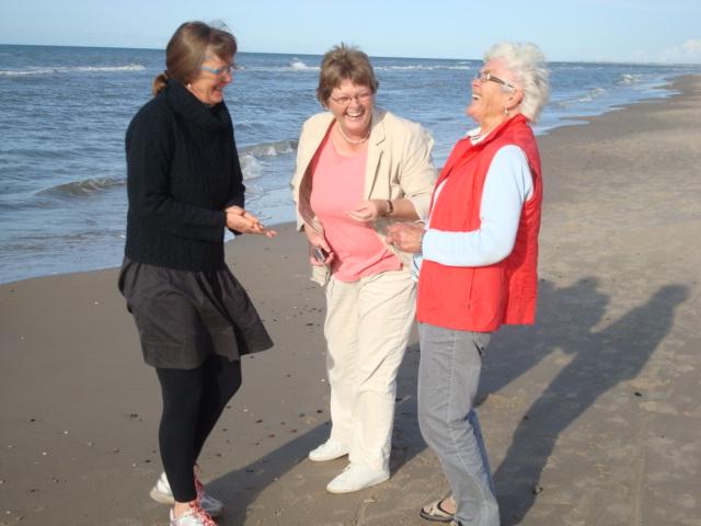 Højt humør fra stranden i Tversted. Fra venstre Jane, Lene og Gudrun