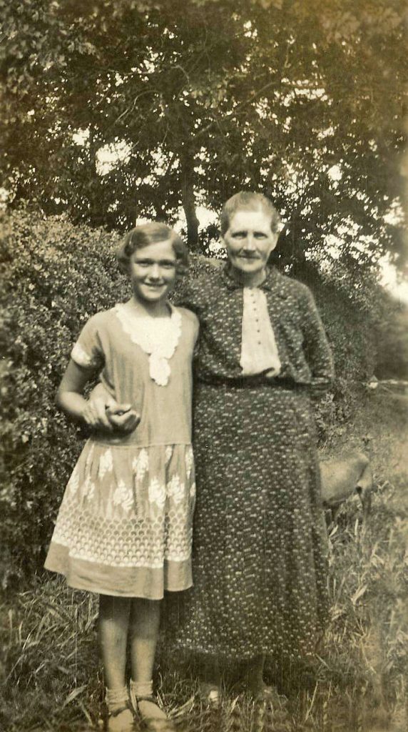 Fra venstre mod højre: Christa Nielsen-Gøgsig (1905-79) og Gudrun Gøgsig Nielsen (1927) foran ”Lille Gøgsig”, Tuen.