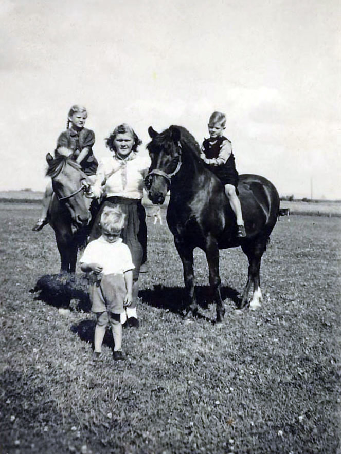 Gudrun, Jytte, Niels og Aage med hestene fra ”Fuglsig Mark”