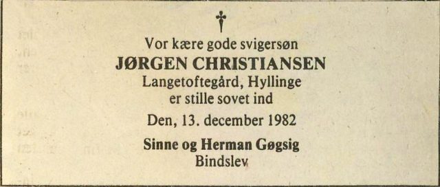 Forældrene Herman og Sinne der drev Lille Gøgsig i 45 år, flyttede i 1972 til Sellebjergvej i Bindslev. Her boede de til august 1986, hvor efter de flyttede til Sjælland. De flytter ind i Langetoftegård hos Gudrun, der stadig drev gården efter Jørgens død i 1982. Hos Gudrun kunne de giver en hjælpende hånd med på gårdens mange gøremål. På Langetoftegård hos Gudrun holdt de også deres diamantbryllup den 24. november 1986.