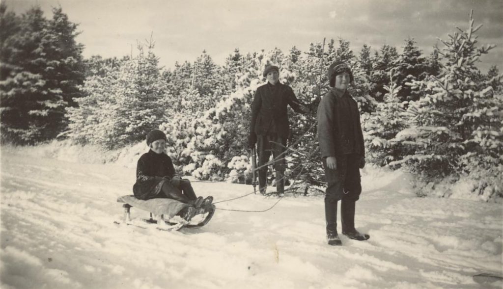 Juletræet hentes – der var fest og glæde. Far, Gudrun og Arne.