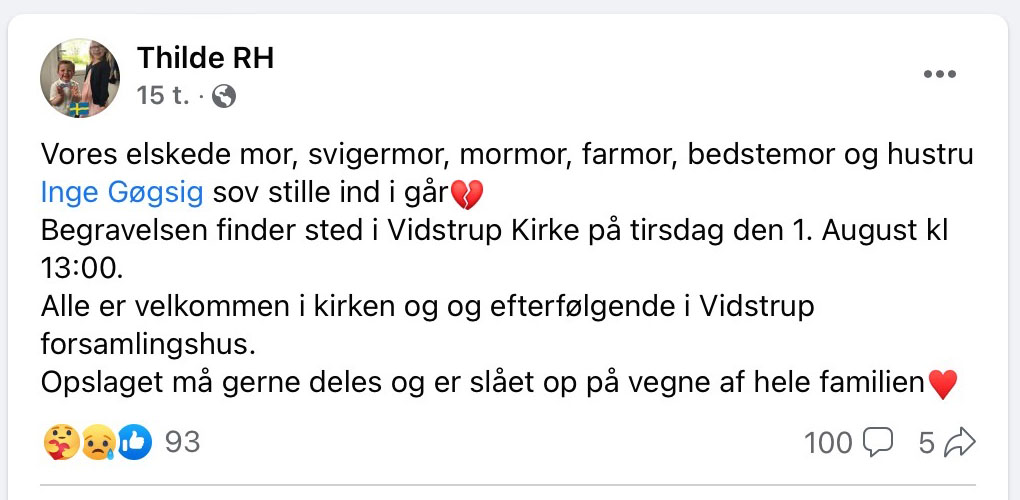 Inge er begravet på de ukendtes gravsted Vidstrup Kirkegård