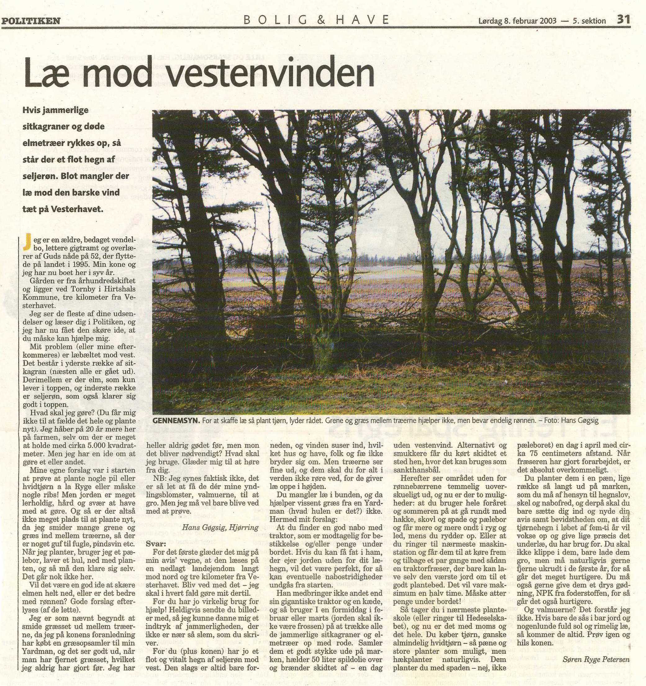 Var på jagt efter kone nummer to til mit næste barn. Endte med to hunde. En Islandsk fårehund med en kæreste og en Bomuldshund med min nuværende, havde nemlig mødt Inge Rishøj i 1987 som havde Rasmus og Mathilde. Købte en tolænget gård Ejstrupvej 48 i Tornby Hjørring kommune i 1995, og blev gift samme år. Bryllupsgave: Gøgsinge skiltet. Det fulgte os i de 24 år, vi boede der. Min hjemmeside hedder det samme. www.goegsinge.dk Haven var på 4500 m2, så der var plads, og en stor bålplads, hvor der er blevet sunget mangen en sang om bålet. Atelieret på 120 m2 hvor der endelig var plads til at male store billeder. Baren på 4,7 m blev installeret. Inge har produceret meget mad til nabofester og pakhusåbninger, hvilket var en tradition i flere år.