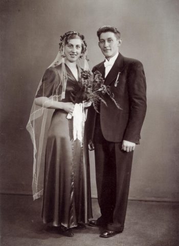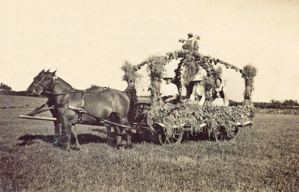 1937. Hans og Marie med pyntet hæstevogn på sjælland.i