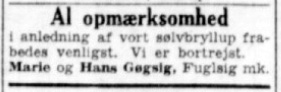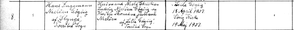 Navneændring: Hans Ingeman Nielsen fik den 18. marts 1920 kgl. Bevilling på navnet Hans Ingeman Nielsen-Gøgsig. Han var på det tidspunkt 13 år gammel.