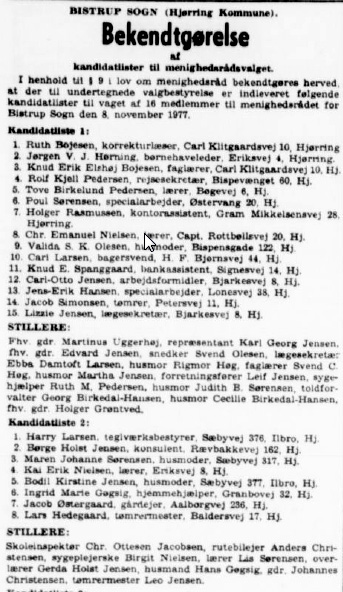 Vendsyssel Tidende 1977-10-18. Ingrid Marie Gøgsig – Menighedsrådsvalg.
