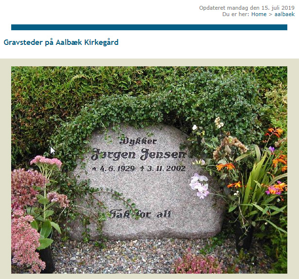 (A13). Inga Gøgsig Andersen (f. 28. maj 1932) blev d. 7. december 1957 gift med Jørgen Jensen (f. 4. juni 1929 – d. 3. november 2002) Gravstenen findes på Aalbæk kirkegård.