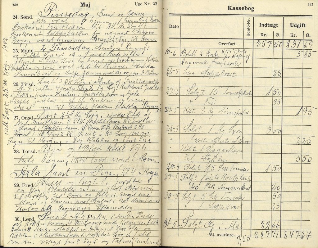Fra Holms dagbog den 28 maj 1942: Arla har fået en pige kl. 4 i morges.