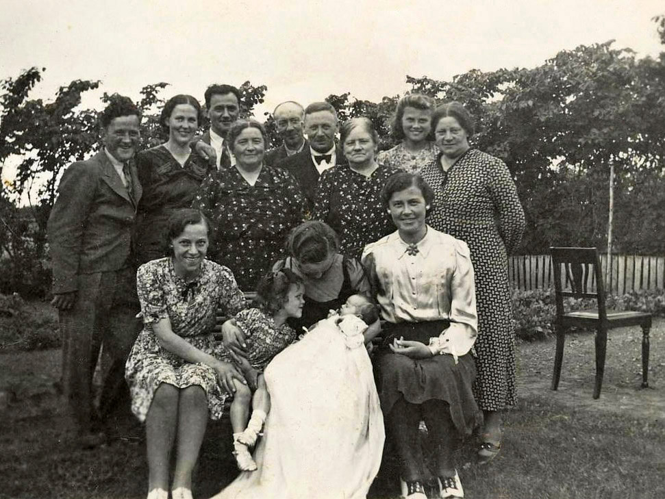 Ingers barnedåb den 28. juni 1942. Det er sikkert det sidste foto der er taget af Holm Gøgsig. Han dør d. 6. september 1942.