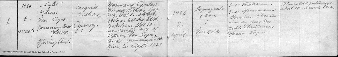 (H11). Ingrid Nielsen-Gøgsig (f. 6. marts 1956 – d. ) blev d. 10. juli 1976 gift med Henrik Mandix Carlsen (f. xx. yy. 1955 – d. ).