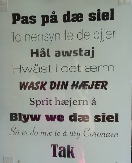 Ingrids tekst på plakaten med corona reglerne på Vendelbomål.